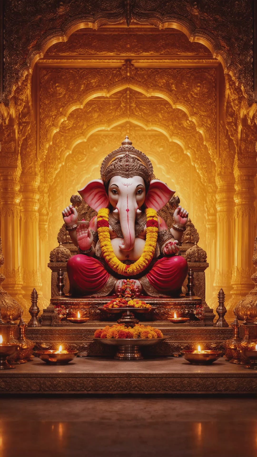 A: Just instrumental/devotional background music with elegant text animations. No voiceover (that would require video narration - a different service).